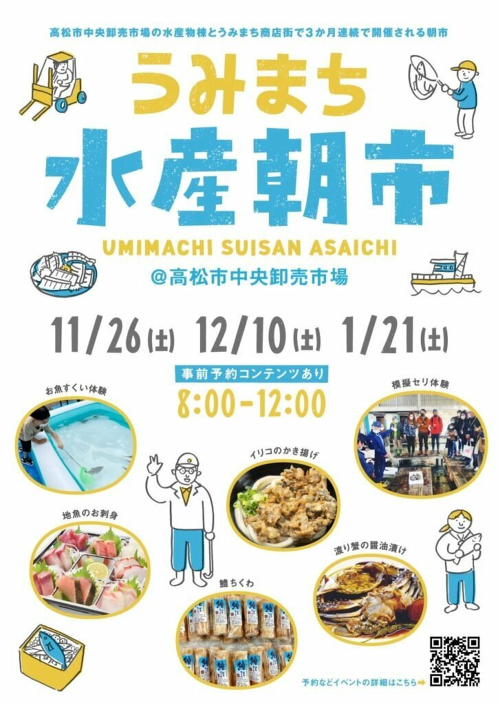 SICSが連携して高松市中央卸売市場の水産物棟とうみまち商店街で3か月連続で開催される朝市を開催します。