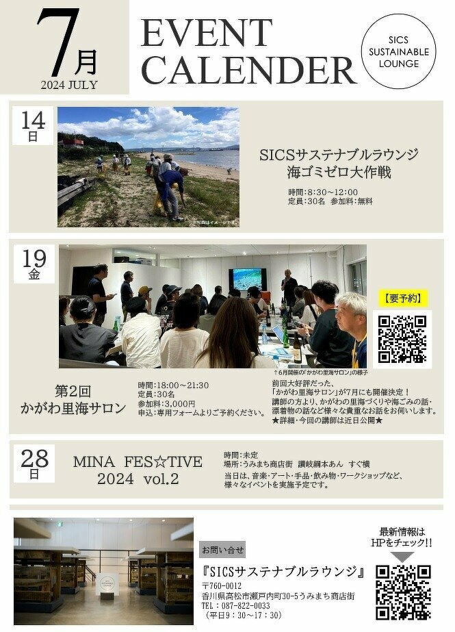 2024.06.25 ☆イベントカレンダー【7月】☆SICSサステナブルラウンジ ▲7月のSICSサステナブルラウンジイベントカレンダー▲ 詳しくはコチラをご確認ください! ■お問合せ先 JTB 高松支店 TEL:087-822-0033(9:30~17:30 ※12/30~1/3及び土日祝休)